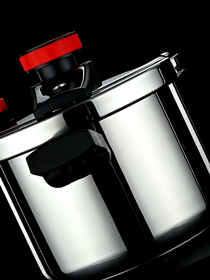 Esta revolucionária panela de pressão de encaixe é projetada para máxima segurança. Ela vem com 4 dispositivos de segurança – o peso ou apito, indicador de pressão, sistema de liberação de junta e a válvula de segurança. Projetada para cozinhar de forma eficiente, segura e sem complicações, a nossa Panela de Pressão em Aço Inoxidável � Prova de Explosão é um verdadeiro tesouro para a sua cozinha. Esta panela de pressão robusta e elegante é a solução perfeita para acelerar o preparo de suas refeições favoritas, mantendo a segurança em primeiro lugar.